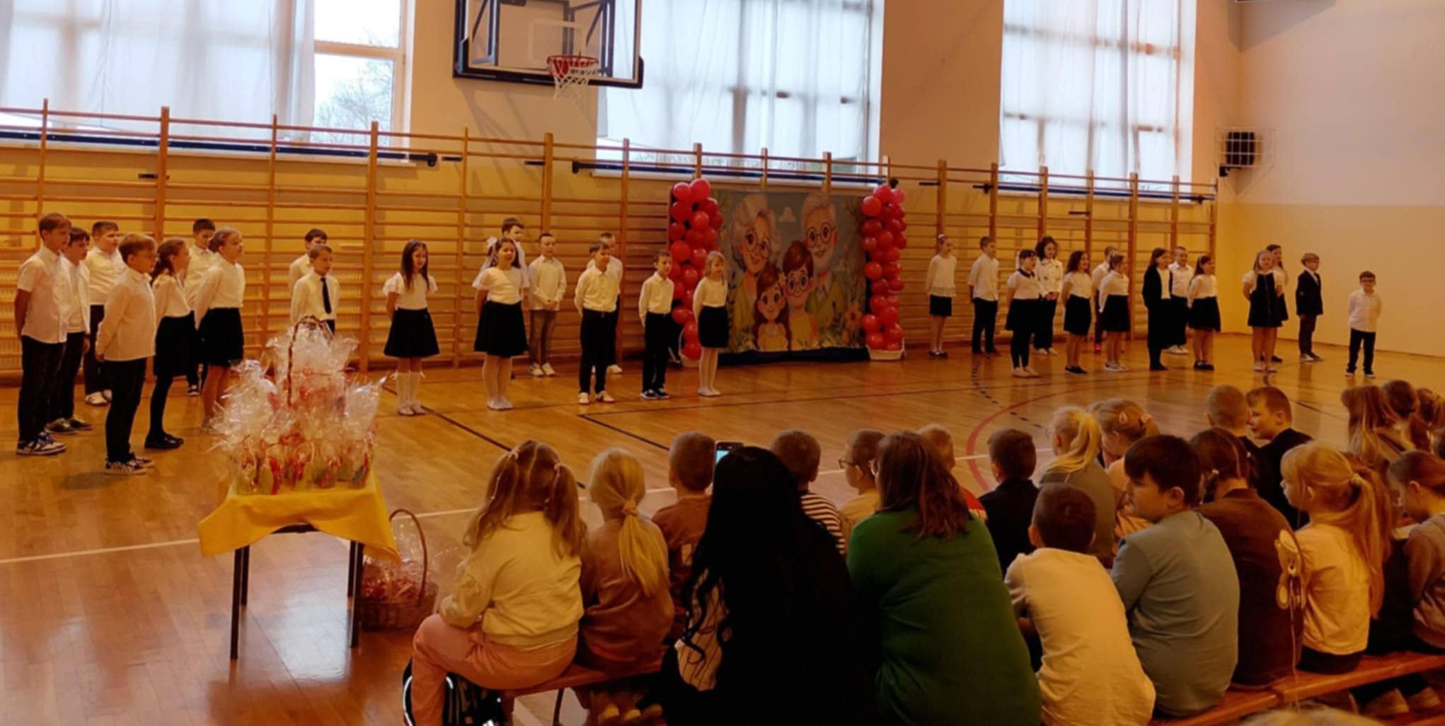 Po ślubowaniu odbyła się część artystyczna, podczas której w humorystyczny, ale pełen wdzięczności sposób uczniowie podziękowali nauczycielom, pracownikom szkoły za ich codzienny trud, cierpliwość i serce. Były wiersze, piosenki, scenki z życia szkolnego oraz ,,pastylki mocy” na wszelkie nauczycielskie bolączki, którymi zostali obdarowani pracownicy szkoły.