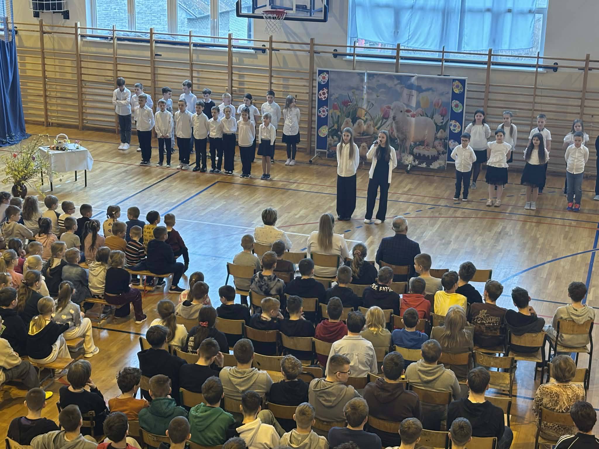 Uroczystość rozpoczęły panie wicedyrektor – Pani Justyna Sikora i Pani Monika Wnętrzak, które serdecznie przywitały wszystkich zebranych. Po krótkim wprowadzeniu odśpiewano hymn państwowy, a następnie odbyła się ceremonia, podczas której członkowie nowo wybranego Samorządu Uczniowskiego złożyli uroczystą przysięgę, że będą godnie reprezentować szkołę, działać na rzecz uczniów, wspierać inicjatywy szkolne i dbać o dobre imię naszej placówki.